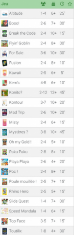 Vous trouverez le nom du jeu, le nombre de joueurs, l'âge minimum et le temps d'une partie